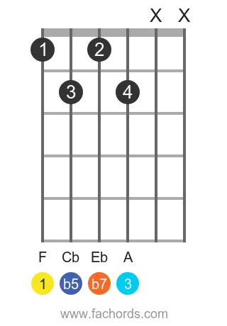 How To Play The F Dominant Seventh Flat five chord on guitar