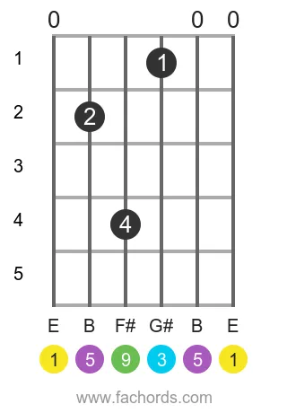 E add9 chord Notes: